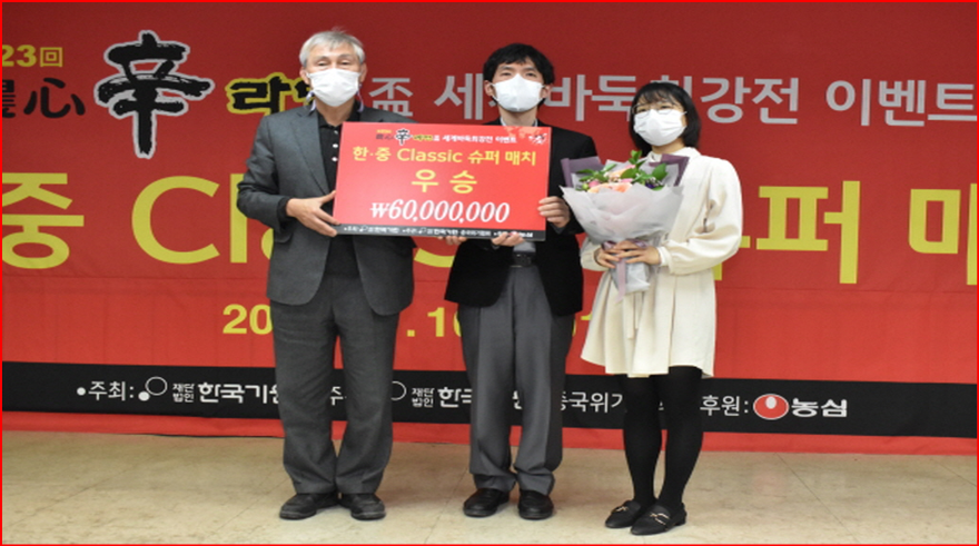 12일 한국기원과 중국기원에서 온라인대국으로 열린 제23회 농심신라면배 세계바둑최강전 이벤트 ‘한ㆍ중 클래식 슈퍼 매치’ 3라운드에서 한국이 중국을 2-1로 꺾고 최종우승을 차지했다.