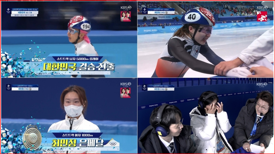 사진제공: KBS어제(11일) 열린 2022 베이징올림픽 쇼트트랙 여자 1000m 경기에서 대표팀 에이스 최민정이 김민석, 황대헌에 이어 대한민국선수단에 세 번째 메달을 안겼다. 최민정은 결승전에서 2바