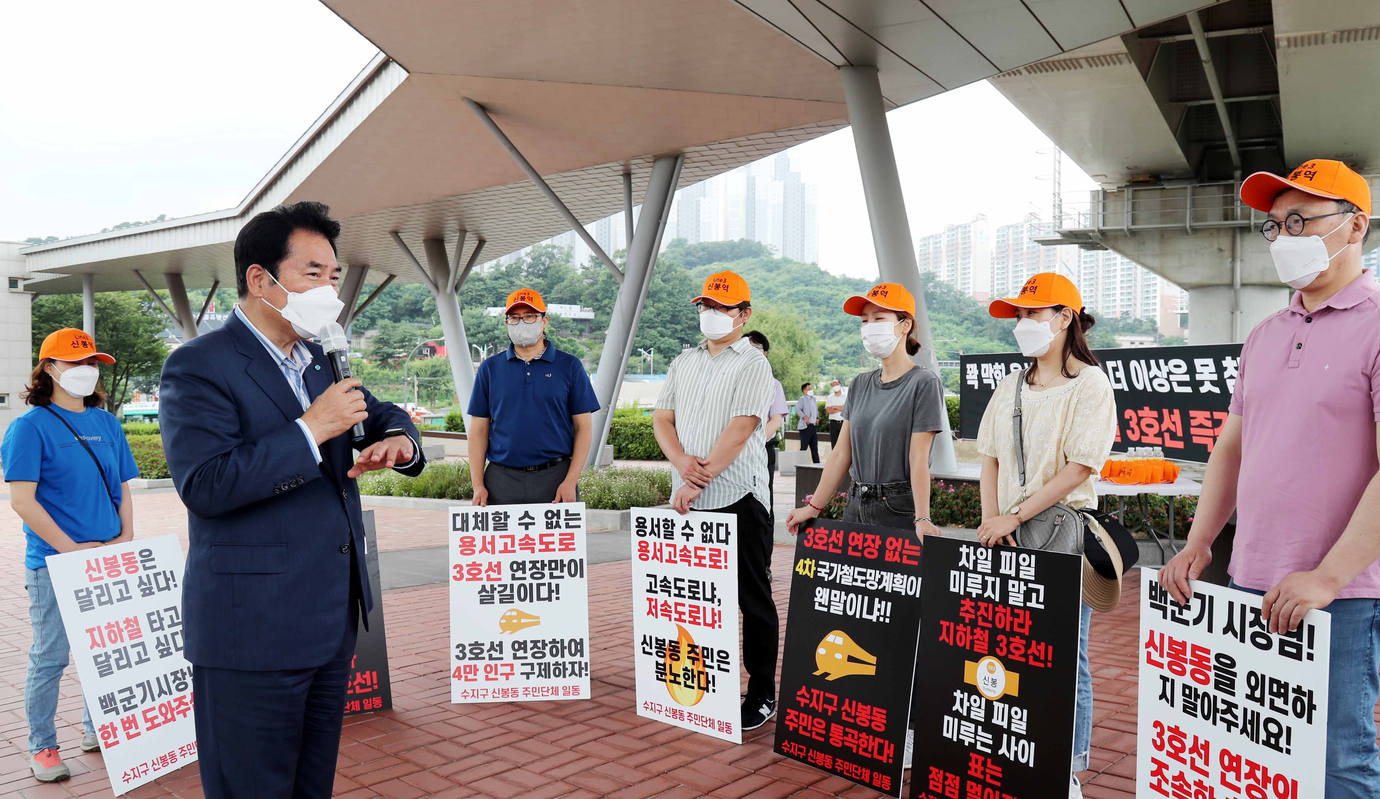 한편, 이날 수지구 신봉동 주민 9명은 시청·용인대역 1번 출구 앞에서 3호선 연장 사업을 요청하는 집회를 가졌다. 이날 집회에는 정춘숙 국회의원도 참석해 주민들을 격려했다.